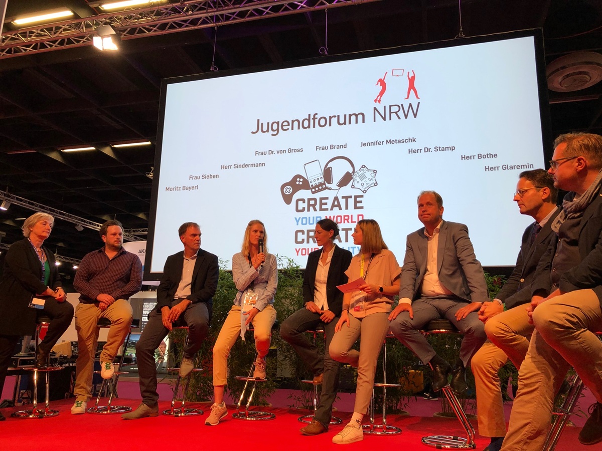 Seit vielen Jahren ist die GMK im Rahmen des Jugendforums NRW auf der gamescom in Köln mit eigenen Angeboten vertreten. Das Motto des Jugendforums lautete in diesem Jahr: „Create your World. Create your Reality.“